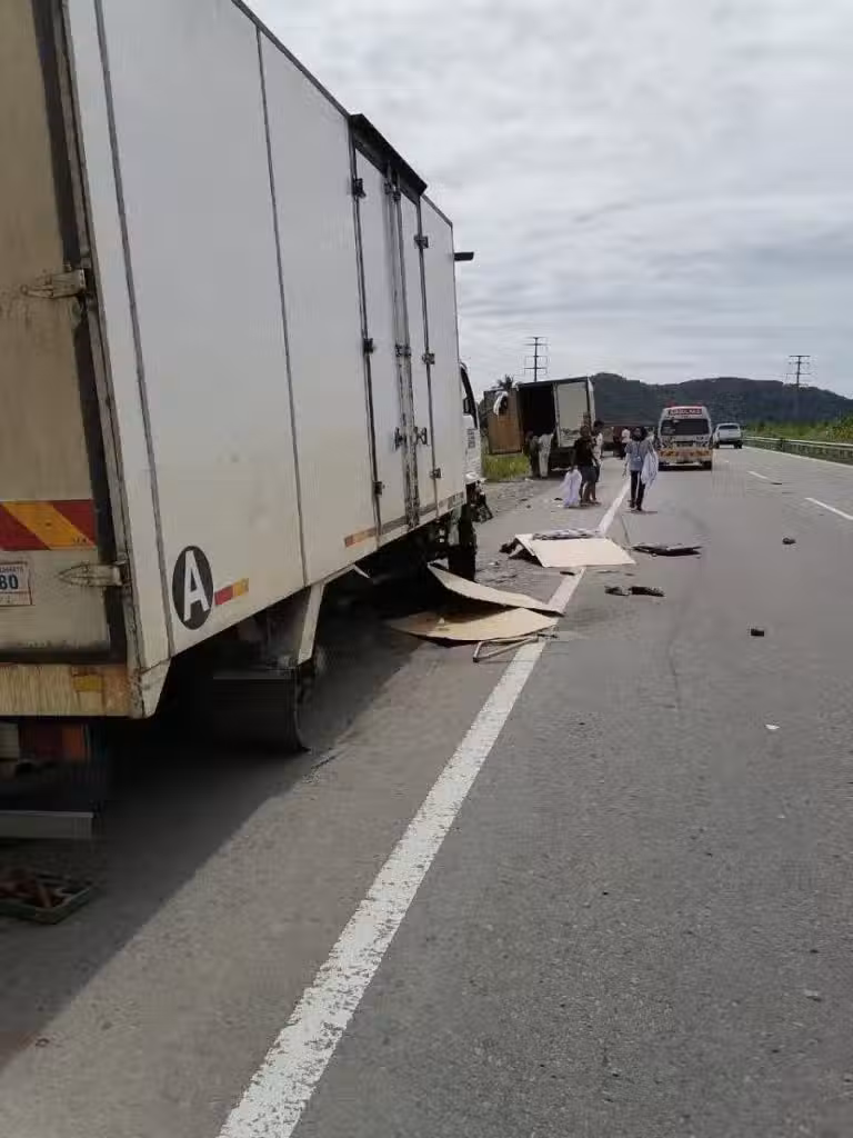 今午2時30分,泛婆羅洲大道吧巴納卡巴斯路段發生奪命車禍——兩名男子在路邊為羅里更換輪胎時,突遭失控的國產賽佳轎車高速撞擊,慘死當場。