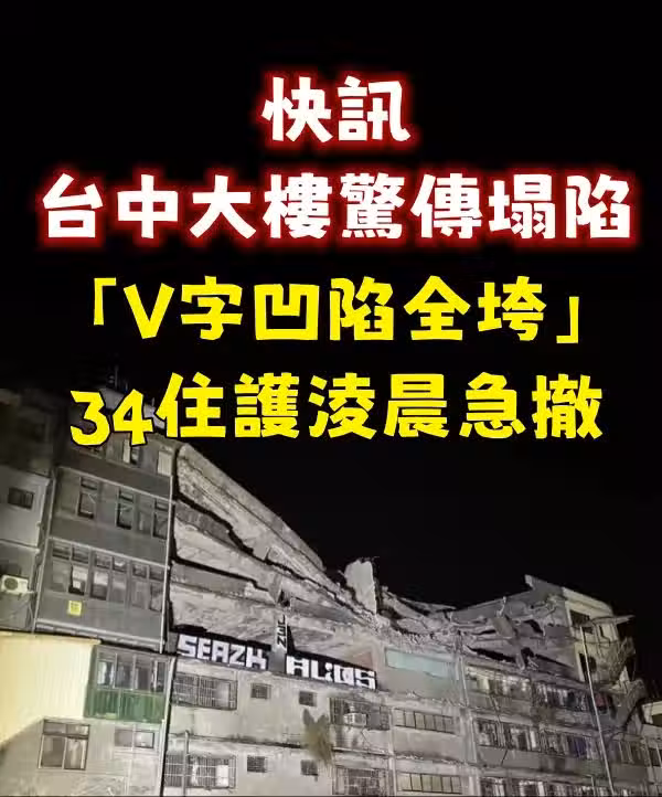 快訊/台中大樓驚傳塌陷「V字凹陷全垮」 34住戶凌晨急撤