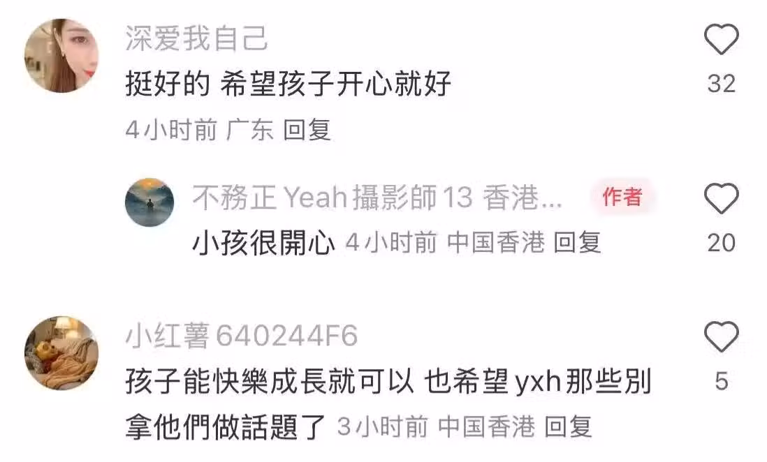偶遇網友回覆:完全沒問題,很融和的一家。有網友稱,挺好的,希望孩子開心就好。
