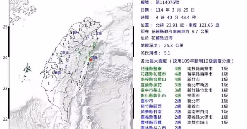 快訊 / 花蓮規模5.1地震 (台氣象署:三天內留意餘震)