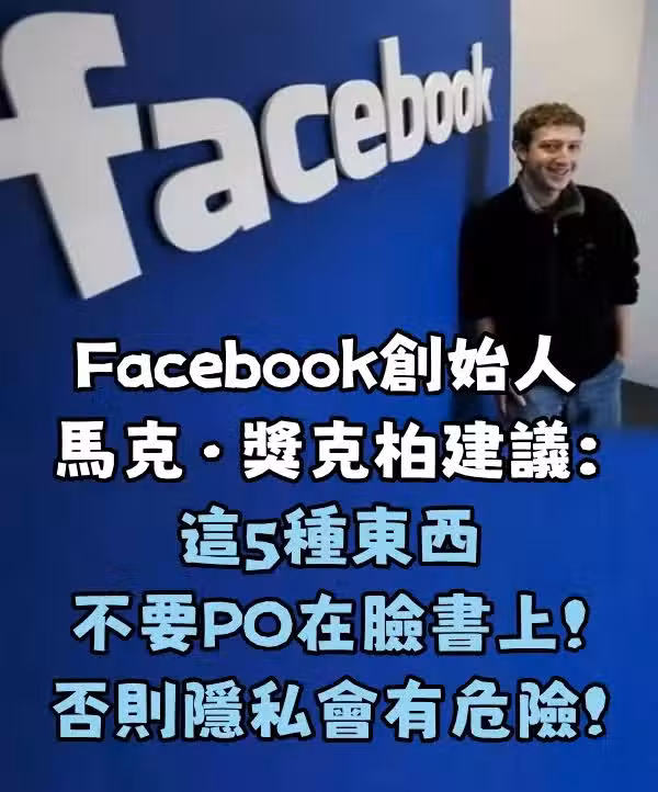 Facebook創始人馬克·獎克柏建議:這5種東西不要PO在臉書上,否則隱私會有危險!