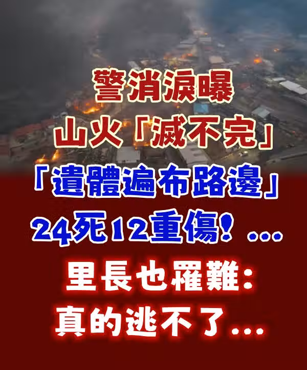 快訊/警消淚曝山火「滅不完」「遺體遍布路邊」24死12重傷!里長也罹難:真的逃不了...