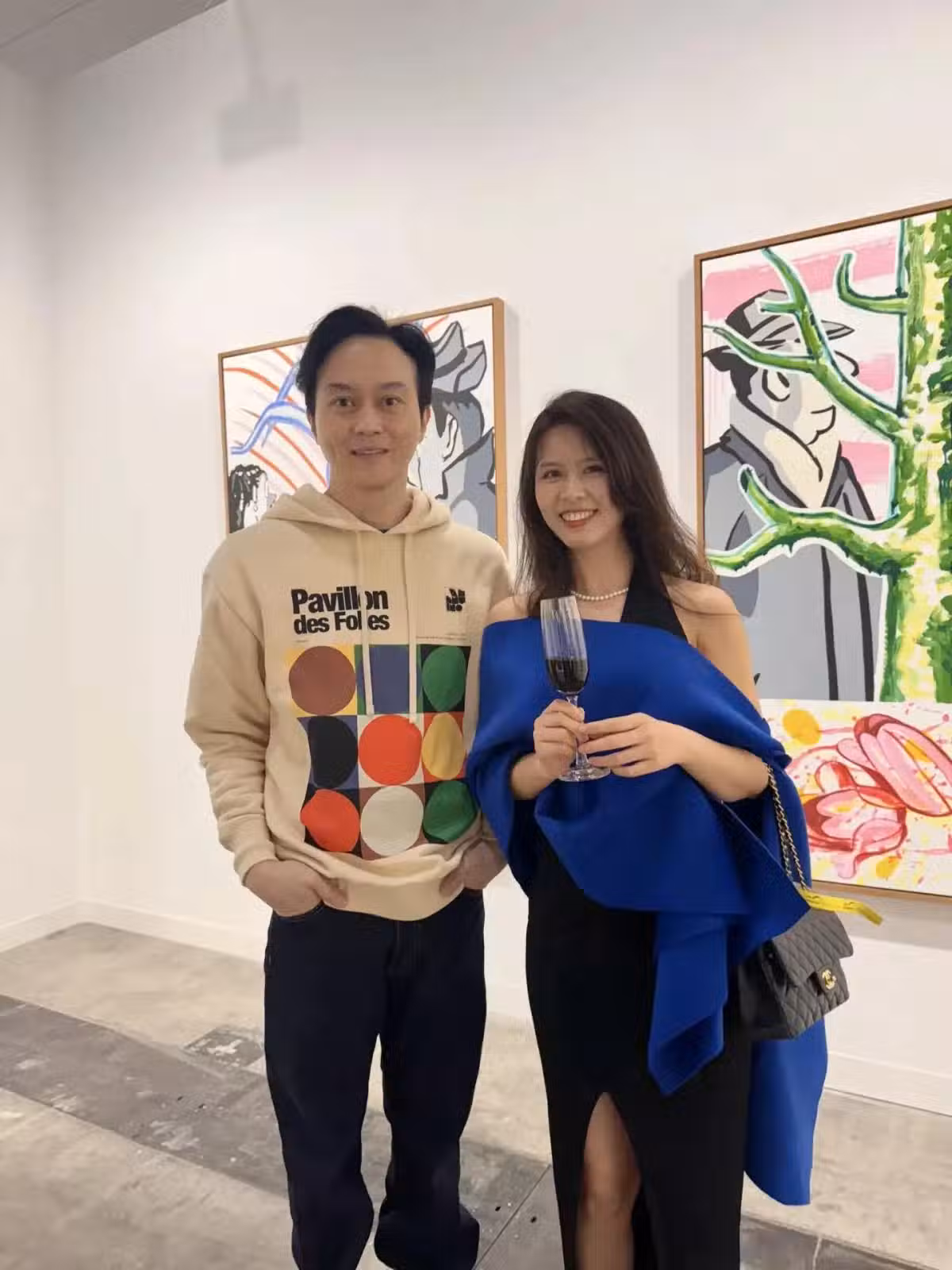 53歲張智霖在香港,和袁詠儀看畫展,素顏皮膚好,又高又瘦不油膩
