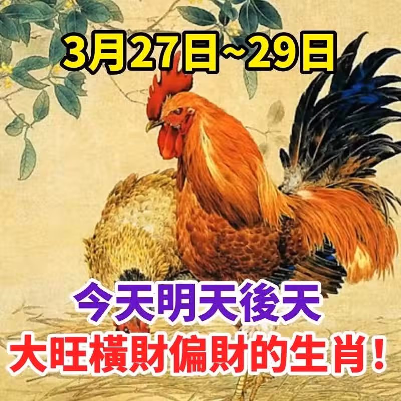 3月27日 到 29日,今天明天後天,大旺橫財偏財的生肖!