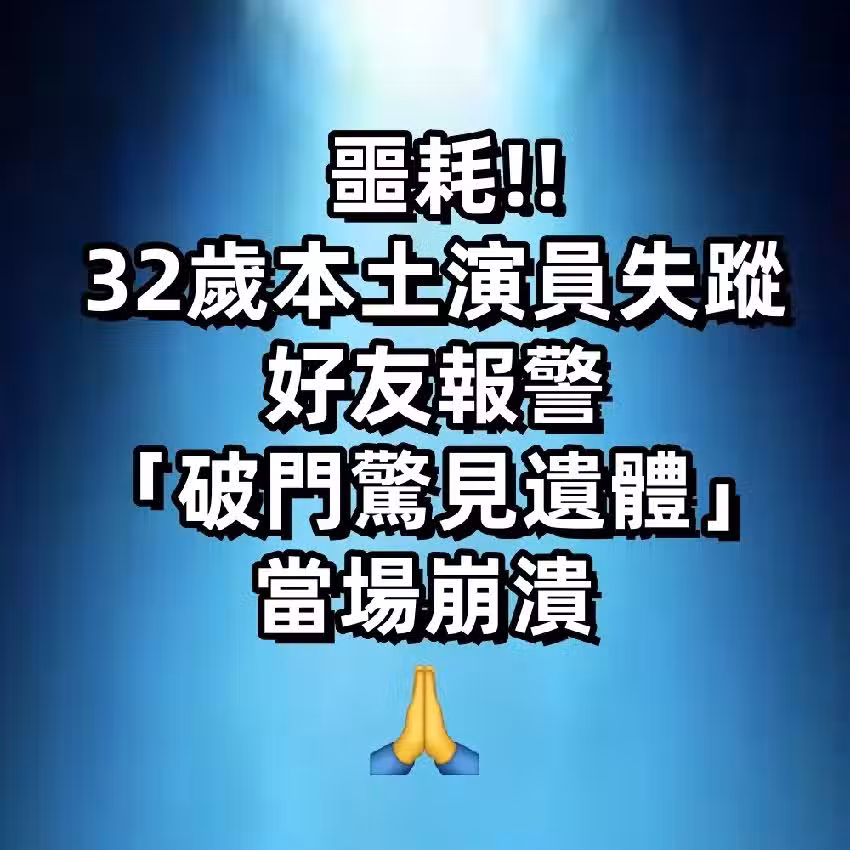 32歲本土演員失蹤!好友報警「破門驚見遺體」當場崩潰 #告別式時間曝光