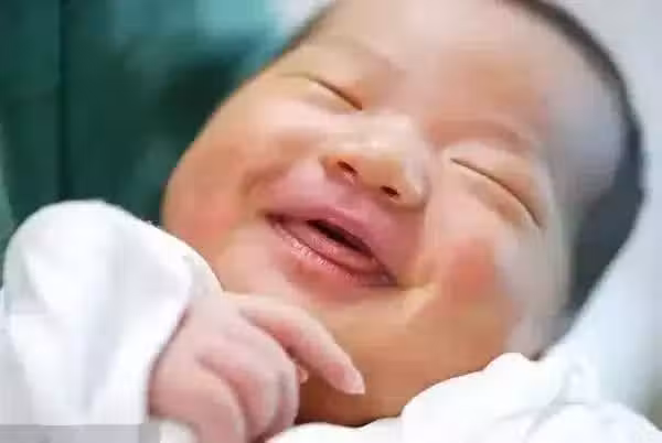 寶寶順利出生後,她驚喜地發現孩子並沒有像其他新生兒那樣大哭,而是對著自己露出了微笑。