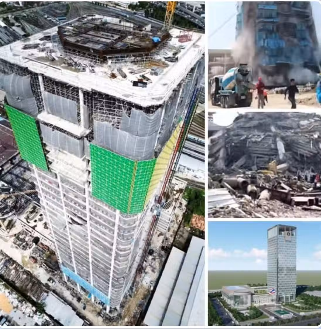 地震之前正在進行內部裝修和外部玻璃幕牆安裝工作,地震發生之後,泰國消防部門迅速進入了救援。