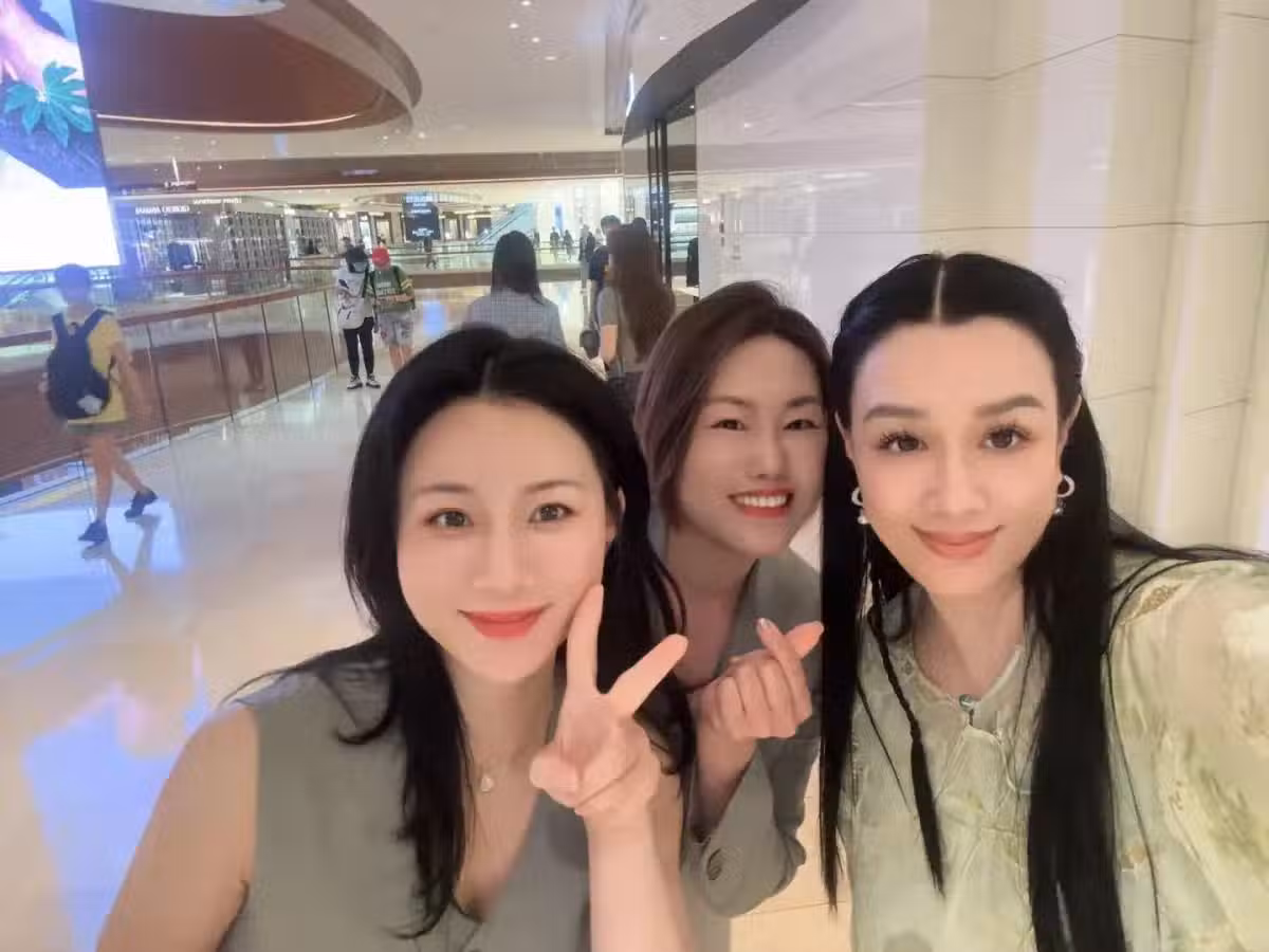 54歲鍾麗緹在廣州,一個人逛太古匯,打扮像貴婦,身上戴好多珍珠