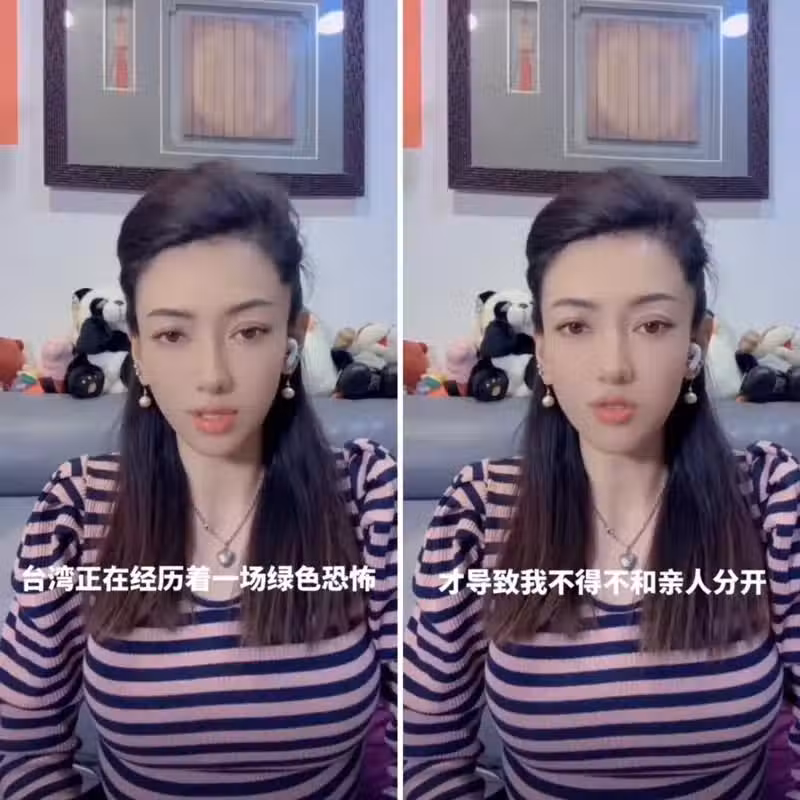 「恩綺」說,台灣正在經歷著一場綠色恐怖,顛倒黑白,才導致她不得不和親人分開。圖/擷取自恩綺抖音