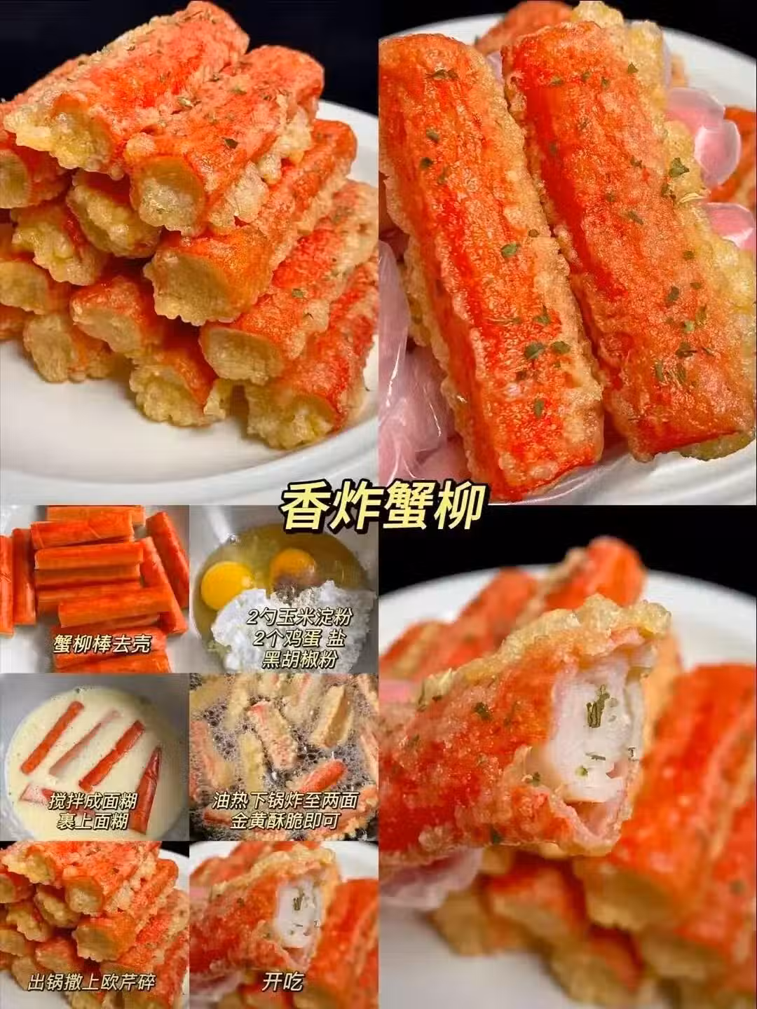 香炸蟹柳:便利店美食升階指南,蟹柳棒撕成細絲,裹上調過味的脆炸粉。 油溫六成熱時下鍋,15秒撈出瀝油。撒上歐芹碎,鮮味在酥脆外衣下暗潮洶湧,隔壁泡麵都饞哭了。