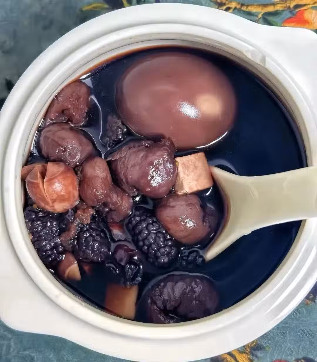酸棗仁是安神法寶,能平肝火,桑葚補氣血,蓮子清熱降火,百合潤肺,能緩解肝火旺導致的乾咳和煩躁。這道湯安神效果很不錯,專治胡思亂想睡不著。