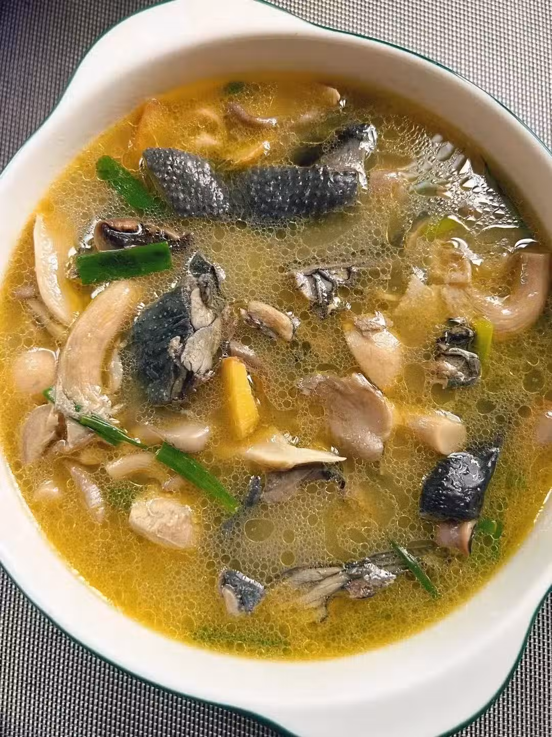 2、放入菌菇再煮半小時,加入適量鹽和雞精調味,撒上蔥段,即可出鍋。