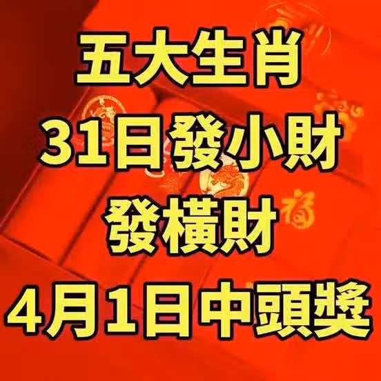 五大生肖:31日發小財發橫財,4月1日中頭獎。