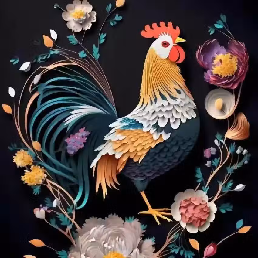 」生肖雞,生於金雞報曉之際,承載著陽剛之氣,猶如鳳凰展翅,翱翔於九天之上。