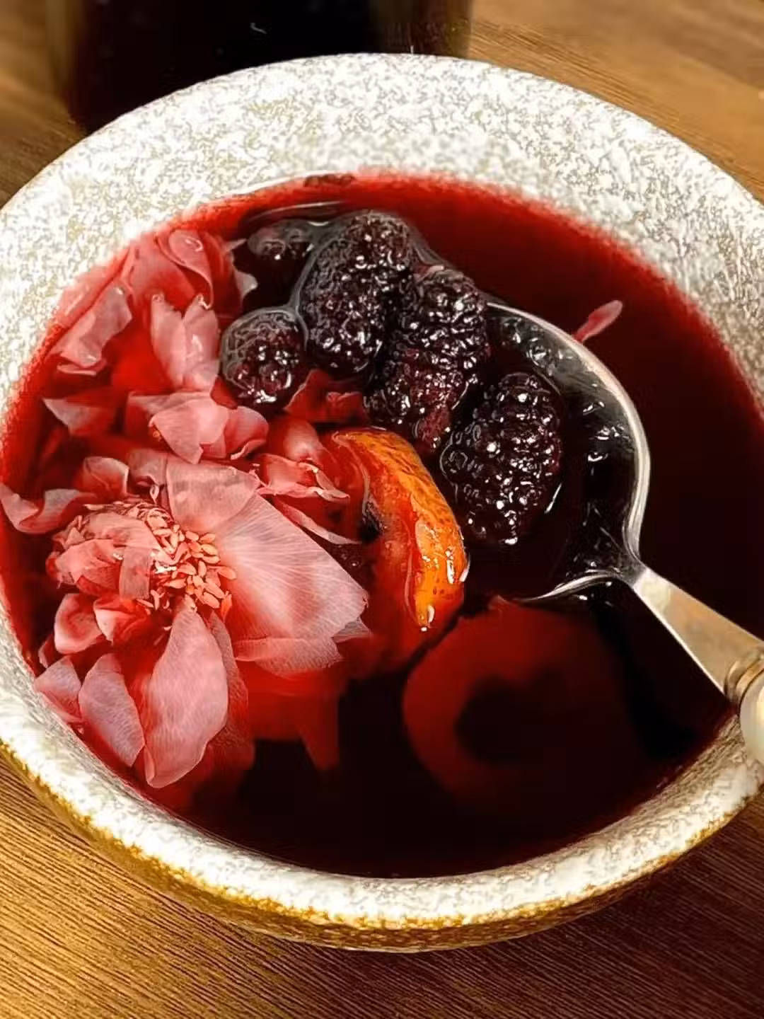 【✅食材準備】 : 桑葚12克、山楂12克、玫瑰花10克 【✅做法】 : 1、準備好桑葚、山楂、玫瑰花清洗乾淨後,放入養生壺中; 2、倒入500毫升的清水大火煮開,轉小火煮15分鐘即可飲用;