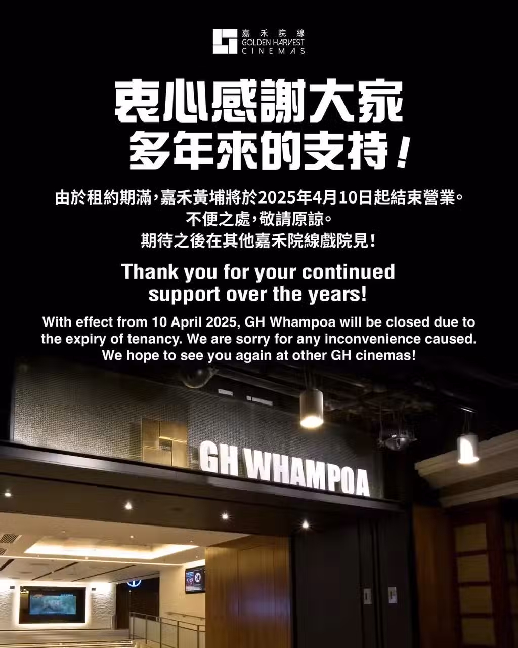 結業潮|嘉禾黃埔4月10日結業,明起推小食優惠最後一夜與戲迷重溫四部經典電影