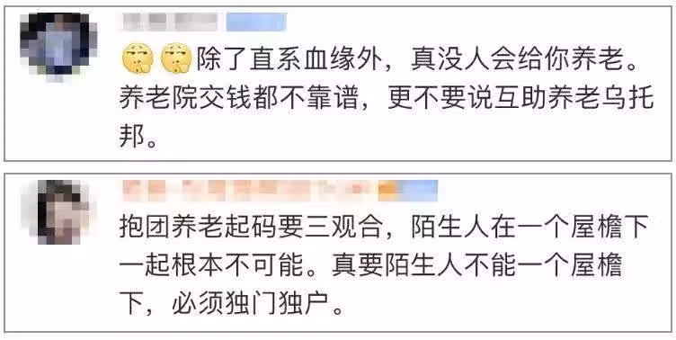 曾經網上就有徵集「抱團養老」的活動,短短几天近300個人報名,但是這種生活體驗也僅僅是維持了一周,就都不歡而散了。