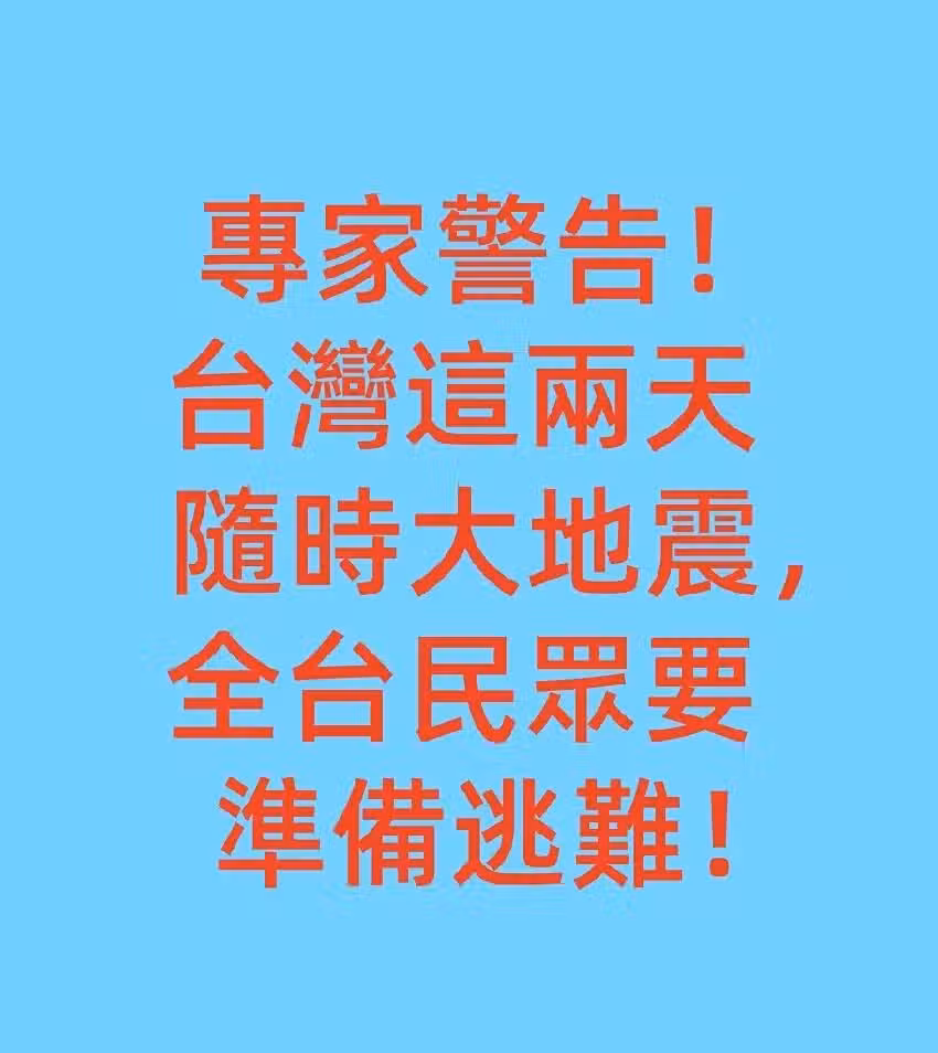 「專家警告,台灣這兩天隨時大地震,全台民眾要準備逃難!」
