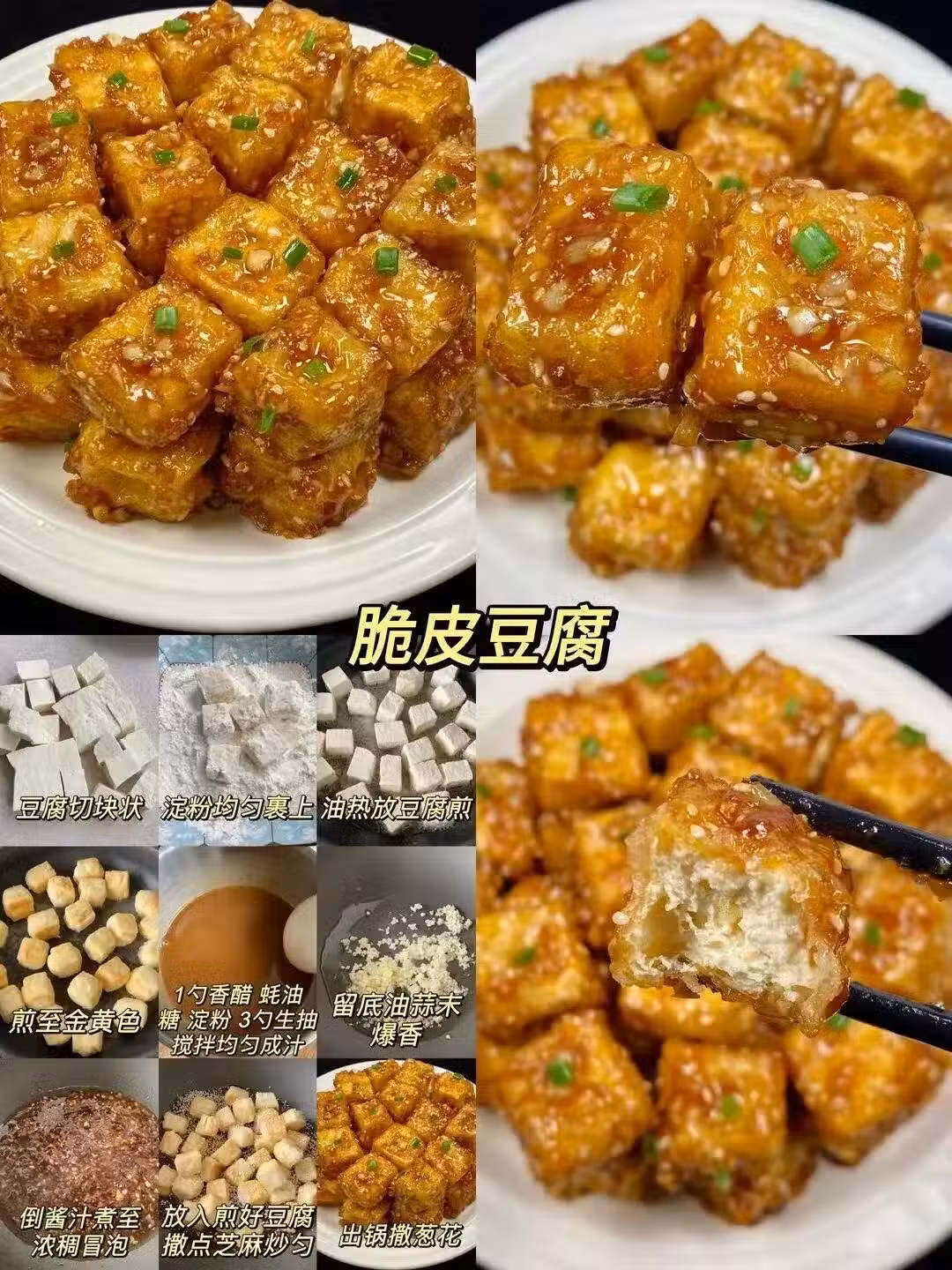 脆皮豆腐:豆腐界的反差萌,這玩意兒簡直是「素菜逆襲」的天花板! 老豆腐切塊裹澱粉,油鍋里滾一圈,外皮酥到掉渣,內里嫩得能掐出水。 雲南街頭的蘸水辣子一澆,酸辣開胃,吃完只想對天發誓:豆腐,是我以前小看你了!