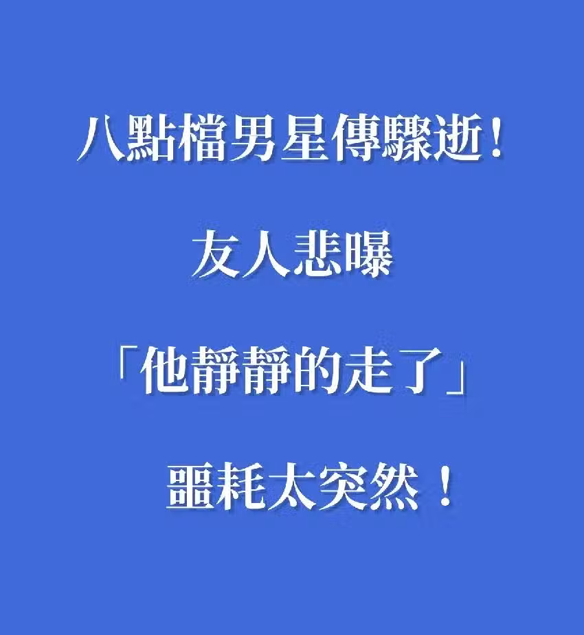 八點檔男星傳驟逝!友人悲曝「他靜靜的走了」噩耗太突然.....