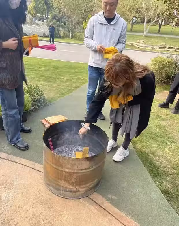 李玟二姐趕赴武漢為妹妹掃墓,燒紙錢滿是哀思!墓地周圍環境優美