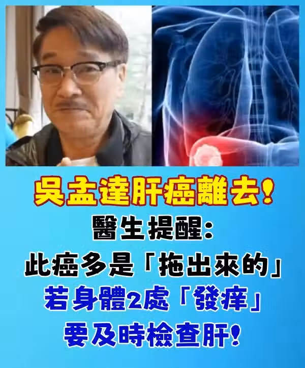 香港演員「達叔」吳孟達出道多年,靠著周星馳多部電影,深受粉絲的喜愛,卻因肝癌病逝,享壽70歲!醫生提醒肝癌多是「拖出來的」,提醒:身體若這2處發癢,抓緊檢查肝功能肝臟除了幫助人體代謝,完成排毒以外,還推動著上千種生理進程,是「人體的化工廠」其中較為常見的就是儲存糖厡、合成蛋白,合成凝血因子等