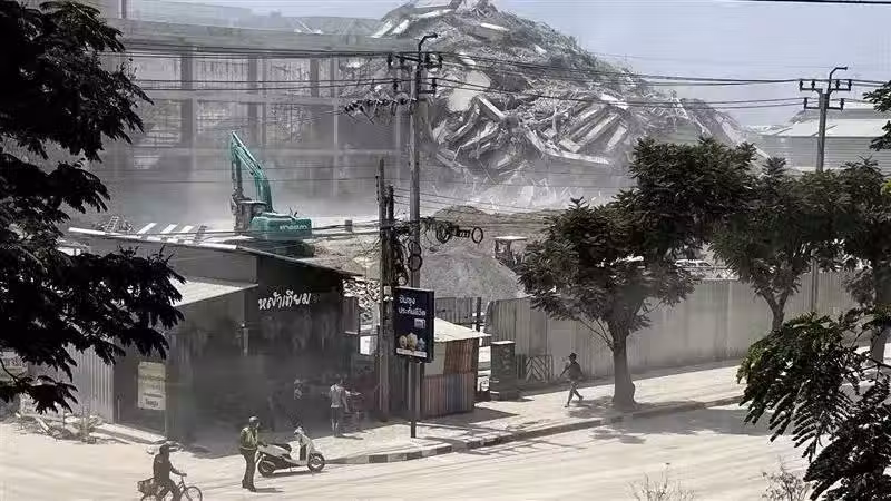 緬甸強震波及泰國,興建中的高樓瞬間坍塌。