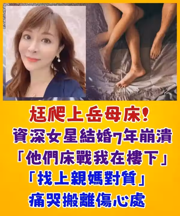 尪爬上岳母床!資深女星結婚7年崩潰「他們床.戰我在樓下」,「找上親媽對質」痛哭搬離傷心處