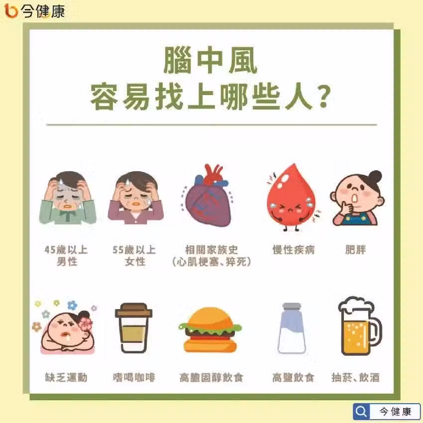 美國研究表明,小中風 48小時之內,中風的風險很高;24 小時之內,20 名患者裡面就有 1 個人會發生「大中風」。