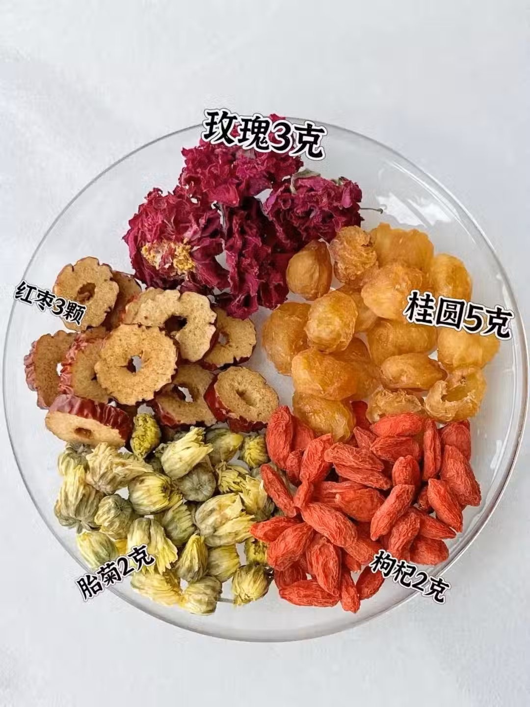 2、清洗乾淨的食材放到茶杯中,加入沸水,燜20分鐘,或者養生壺花茶模式,煮開即可!