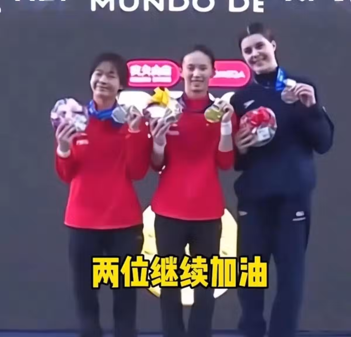 全紅嬋失誤摘銀,賽後擁抱陳芋汐比奪冠還開心,教練捂腰傷鼓掌_跳水_比賽_銀牌~~
