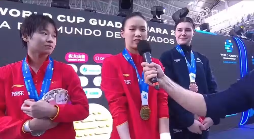笑噴!全紅嬋頒獎被老外採訪扭頭求助陳芋汐,中文回答:謝謝大家!