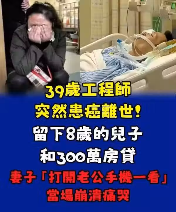 39歲工程師突然患癌離世!留下8歲的兒子和300萬房貸 妻子「打開老公手機一看」當場崩潰痛哭...