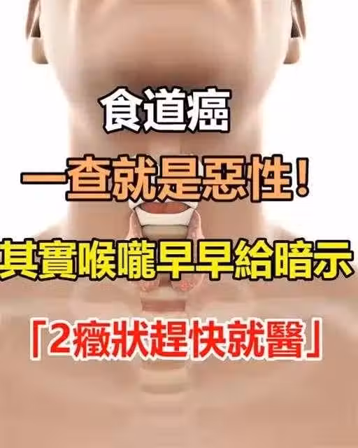 食道癌一查就是惡性!其實喉嚨早早給暗示,2症狀趕快就醫!!
