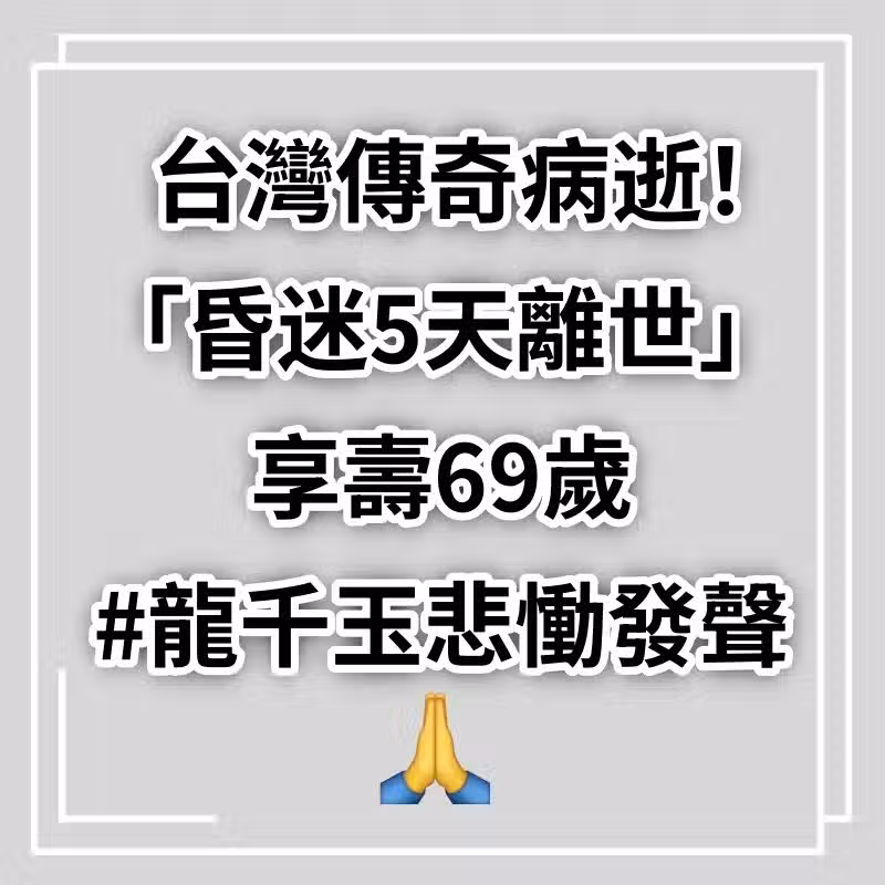 台灣傳奇病逝!驚傳「昏迷5天離世」享壽69歲 #龍千玉悲慟發聲...