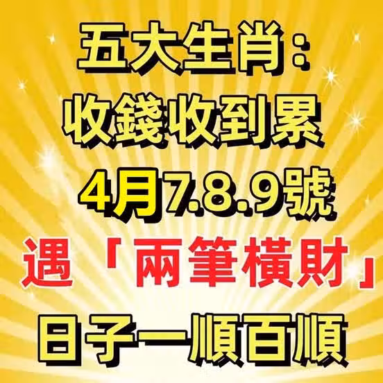收錢收到累!4月7.8.9號遇「兩筆橫財」日子一順百順的生肖!