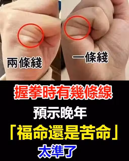 握拳時有幾條線,預示晚年「福命還是苦命」:太准了