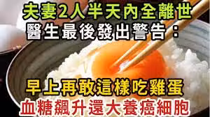 每天早上吃1顆雞蛋,夫妻雙雙患癌去世,醫生最後一次警告,這樣吃雞蛋等於慢性自殺,血糖飆升大養癌細胞,為了自己和家人健康一定要改掉