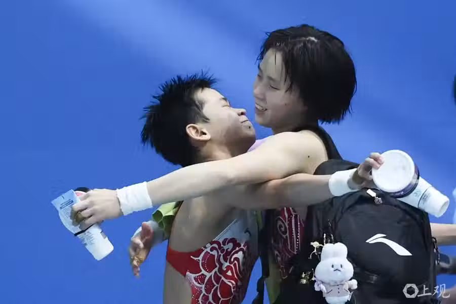 相較於全紅嬋和陳芋汐,掌敏潔的知名度似乎稍遜一籌。但八年前,同樣是中國跳水界熠熠生輝的 「天才少女」。2017年天津全運會,年僅13歲的掌敏潔一鳴驚人,斬獲女子雙人10米台冠軍,自此迅速成長為女子10米台項目的主力選手。