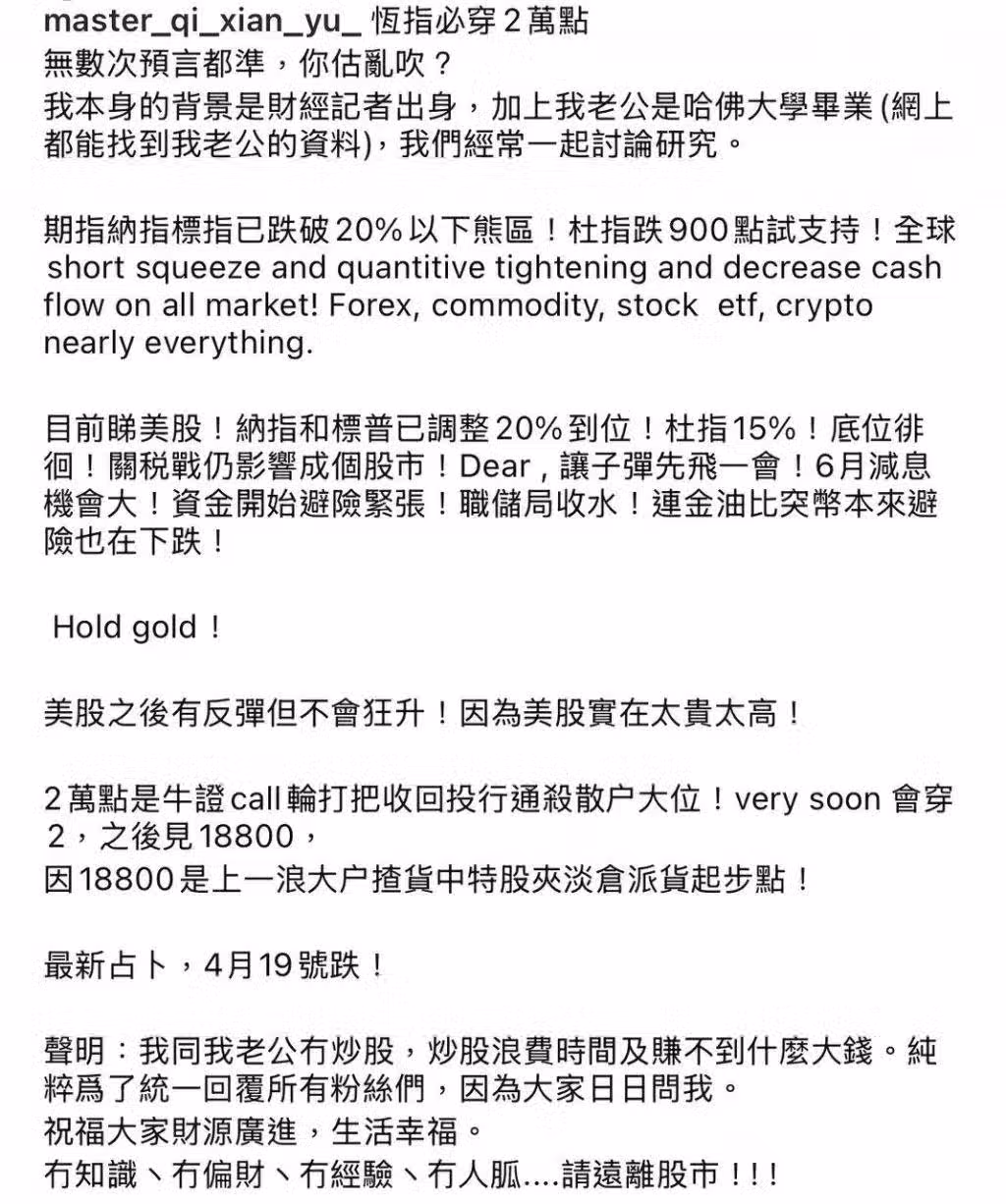 七師傅預言恆指跌穿2萬點竟成真, 具體點名1個日子美股大跌:你估亂吹?