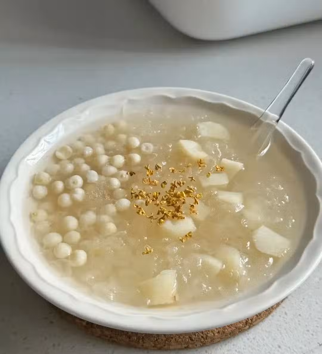 3、可加入適量蜂蜜/冰糖,撒上桂花更加清香,更有秋天的儀式感哦。