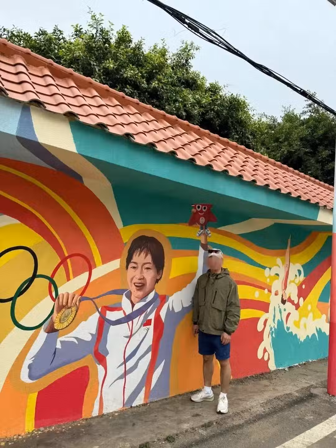 遊客發現邁合村小學旁邊有一面專屬於全紅嬋的繪畫牆,這面牆上畫著全紅嬋在巴黎奧運會上奪金的一幕。她向眾人展示自己的金牌,笑得十分燦爛。此外,牆上還繪畫了全紅嬋跳水的一系列動作,可以說是栩栩如生。