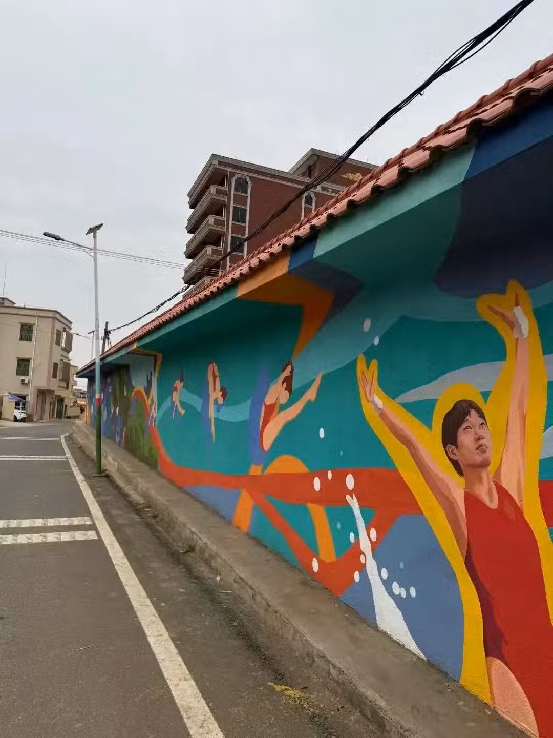 早前邁合村並沒有全紅嬋的牆體繪,顯然是近期出現的。此外,全紅嬋家也大變樣了,樓上樓下的門上都貼滿了懟臉。紅底黑字的對聯看著十分喜慶,但是門窗都關得緊緊的,想必全紅嬋的家人都不在家。