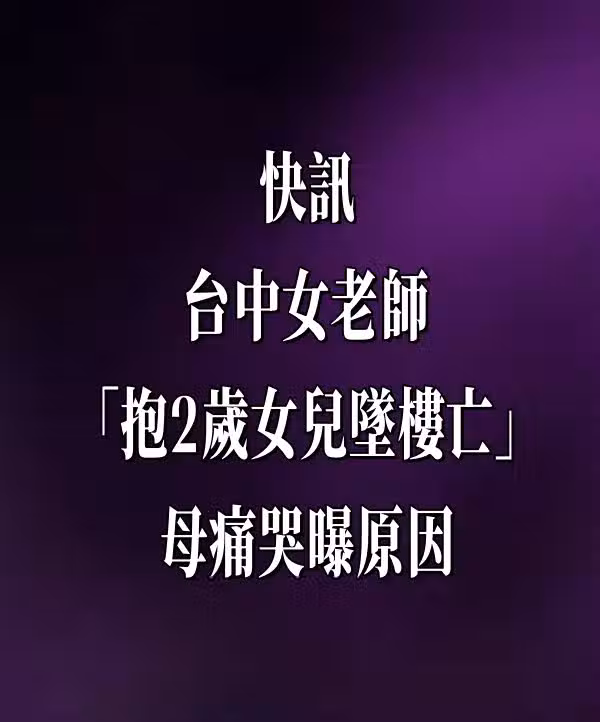 快訊/台中女老師「抱2歲女兒墜樓亡」!母痛哭曝原因.......