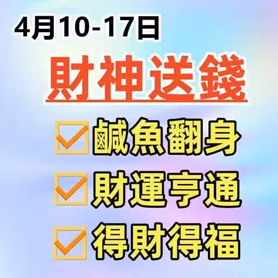 4月10 到 17日財神送錢,鹹魚翻身財運亨通,得財得福的生肖!