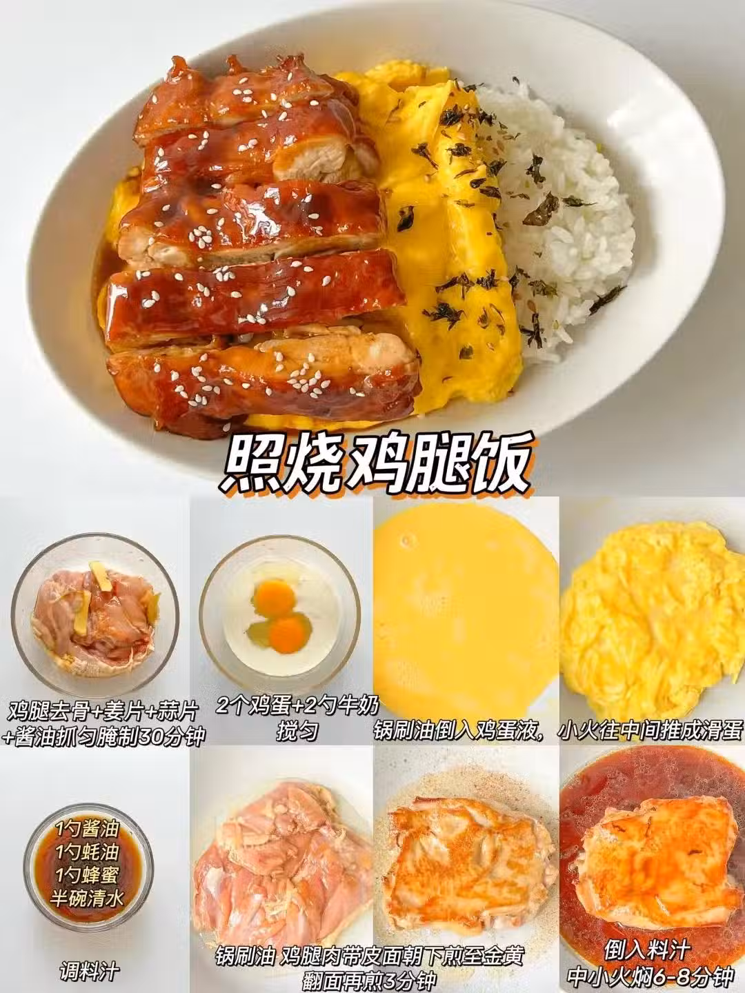 照燒雞腿飯:日劇女主的打工餐,日本街頭的打工仔之光,主打一個「甜咸永動機」。雞皮焦香酥脆,肉嫩到爆汁,醬汁裹著米飯一口升天。