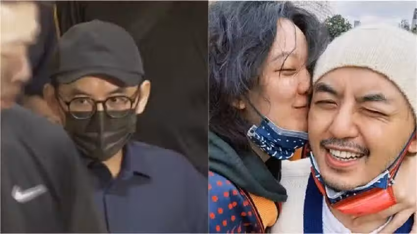 黃子佼(左)全面暫停演藝工作、收入歸零,不僅工作室釋出招租頂讓訊息,甚至連愛車都賣了,家計全靠妻子孟耿如(右1)一肩扛起。