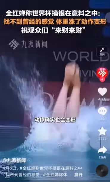 以前她跳水就像個小飛燕,輕盈又漂亮,現在體重一增加,身體協調性得重新調整,難度一下子就上去了。就像我們平時騎自行車習慣了,突然換了個三輪車,得重新找平衡感一樣。