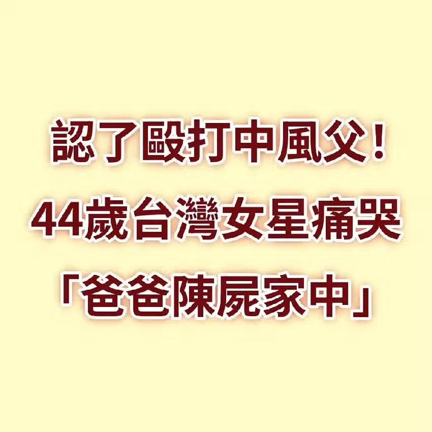 認了毆打中風父!44歲台灣女星痛哭「爸爸陳屍家中」