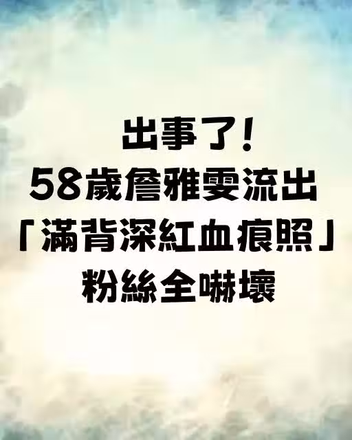 出事了 58歲詹雅雯流出「滿背深紅血痕照」粉絲全嚇壞